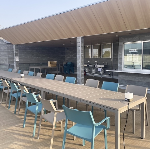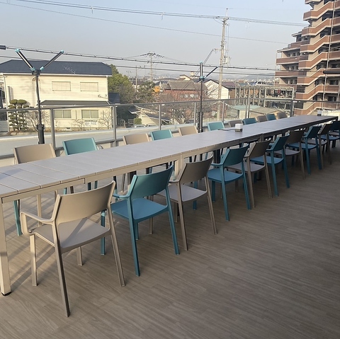 複数のお席を繋げて団体利用にも最適な当店◎雨の日でも一部のお席は屋根でしのげることができますが一部は雨に打たれてしまうので天候によっては雨天中止となる恐れもございます!お気をつけてお越しくださいませ♪