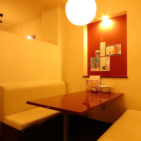 3~6名まで入るソファー型のテーブル席は4つございます。仕切りがあるのでゆっくりお過ごしいただけます♪ご家族や友人同士の集まりにぴったりのお席となっております!
