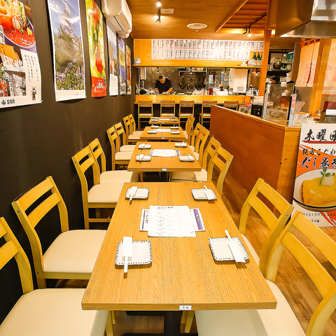 お1人様でのご利用にもおすすめなカウンターのお席、ご友人との飲み会などにもぴったりなテーブル席、会社宴会に最適なゆっくりくつろげるお座敷席など、店内には様々なお席をご用意しております。
