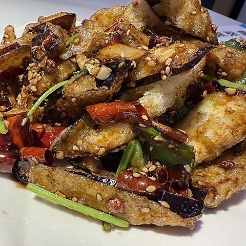 素揚げしてホクホクになったジャガイモ、とろける茄子、彩り鮮やかなピーマンに、琥珀色の甘辛い餡が絡み合います。大地の恵みが口の中で渾然一体となる、野菜料理の最高傑作です。