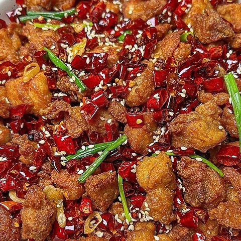 カリッと揚げたアヒルの頭に、灼熱の唐辛子と痺れる花椒が絡む至極の「ガチ中華」。骨までしゃぶり尽くせば、凝縮された旨味と濃厚なコラーゲンが溢れ出します。キンキンに冷えたビールが止まらなくなる、刺激的な中毒飯です!