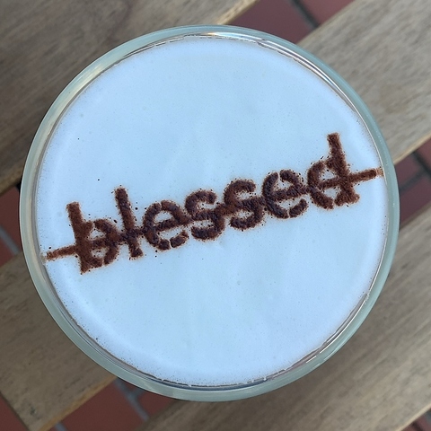 【ブレスドラテ】当店のラテは特別なミルクフォームの作り方をしており、ふわふわで真っ白な泡にココアパウダーのロゴでとても美味しくておしゃれなラテになっております。スペシャルティーコーヒー使用。