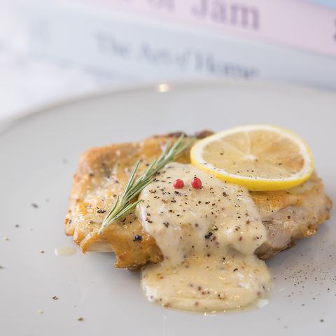 ジューシーなチキンソテーに米粉を使ったクリーミーなソースがたっぷりかかっています。まろやかな味わいと濃厚なコクが、鶏肉の旨みを引き立てます。レモンの爽やかさがアクセントとなり、食欲をそそる一皿に仕上げています。香ばしく焼き上げられたチキンと贅沢なソースのハーモニーをぜひご堪能ください♪