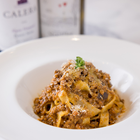 当店のアラカルトメニューは、ワインとの相性抜群の逸品揃い!自家製ボロネーゼパスタは、深いコクと旨みが詰まった一皿で、赤ワインと絶妙にマッチします。柔らかくジューシーなチキンソテーには、クリーミーなソースが絡み、白ワインとの相性も抜群。新鮮なサラダやおつまみも取り揃え、ワインを引き立てるラインナップが魅力です!