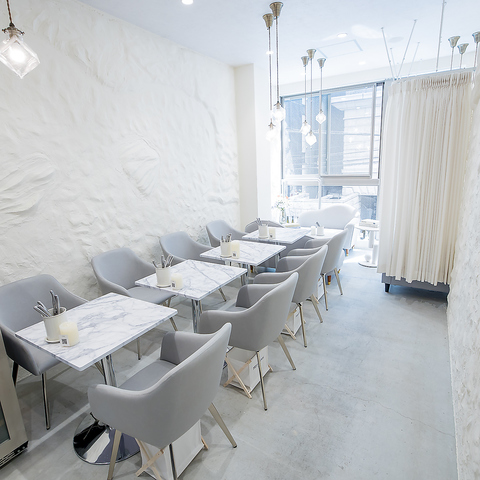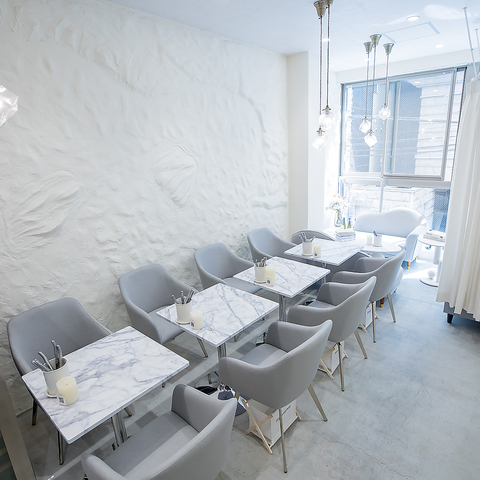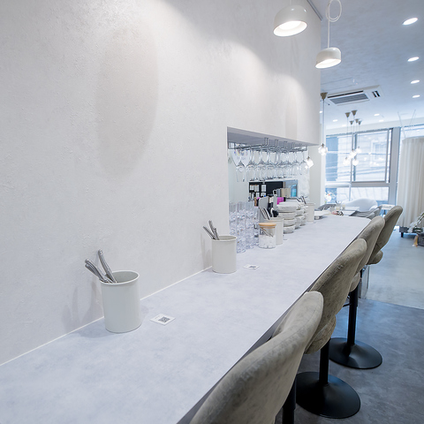 ≪壁際のテーブル席≫ 大理石のテーブルが特徴的なこの空間は、スタイリッシュで洗練された雰囲気を醸し出しています。滑らかな表面は、食事をより一層引き立て、友人との会話も弾むこと間違いなし。テーブルごとに心地よい間隔が保たれており、リラックスした時間を過ごすのに最適です。お気軽にご利用ください!