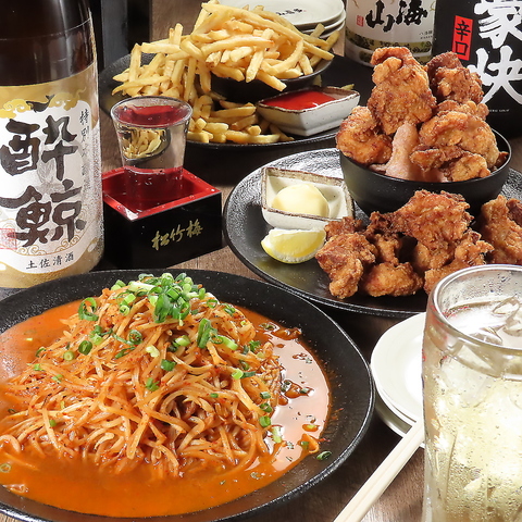 メガ盛りもやし、メガ盛りポテト、メガ盛り唐揚げがあります♪どれもボリューム満点!