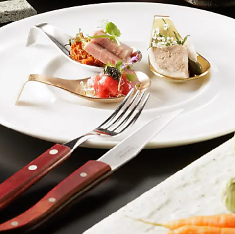 臨場感溢れるライブキッチンで、出来立てのお料理をお楽しみいただけます。シーンに合わせてお選びいただけるコースも豊富に取り揃えておりますので、黒毛和牛をはじめとする高級和牛や海鮮など、厳選した食材を心ゆくまでご堪能ください。