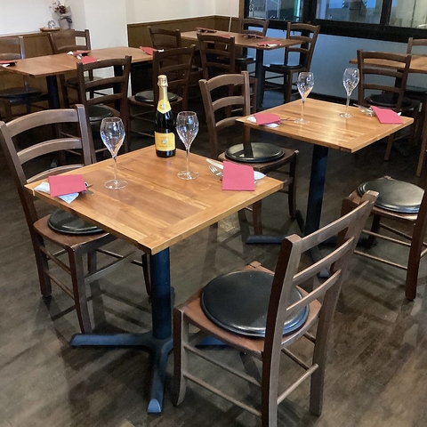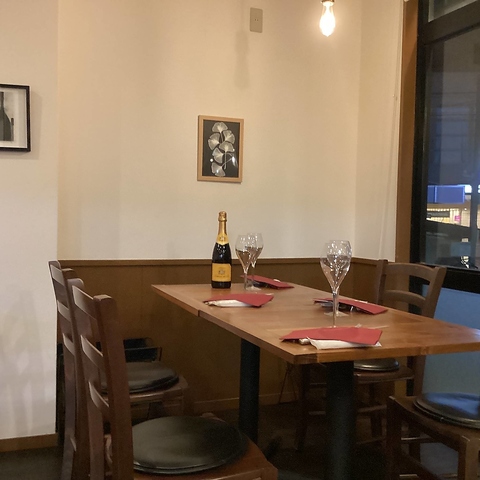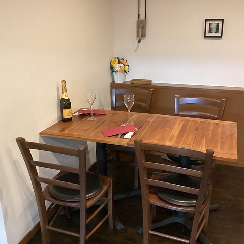 【落ち着いた雰囲気のテーブル席】<1~2名席×2席>使い勝手の良いテーブル席は、様々なシーンでご利用いただけます。ディナータイムは落ち着いた雰囲気の中、お食事をお楽しみいただけます。