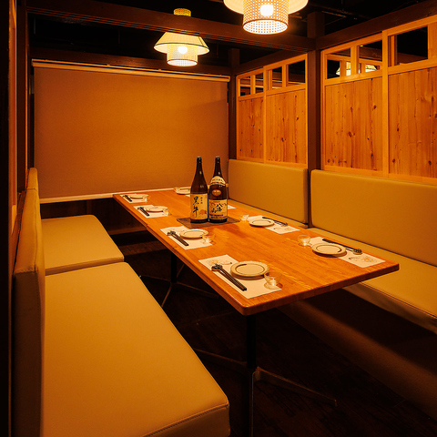 【しっかりと個室も完備したネオ居酒屋】ゆったりとくつろげる個室をご用意。プライベートな飲み会やデートなど、他のお客様とは区切られた特別な空間で楽しみたい方は、ぜひこちらの個室をご利用くださいませ。また人数に合わせた完全個室をご用意できますので、各種ご宴会にご利用ください。