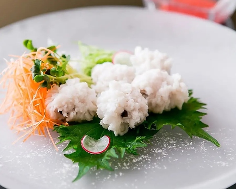 淡路産の活け鱧(はも)を使用 特製の梅肉でお召し上がりください
