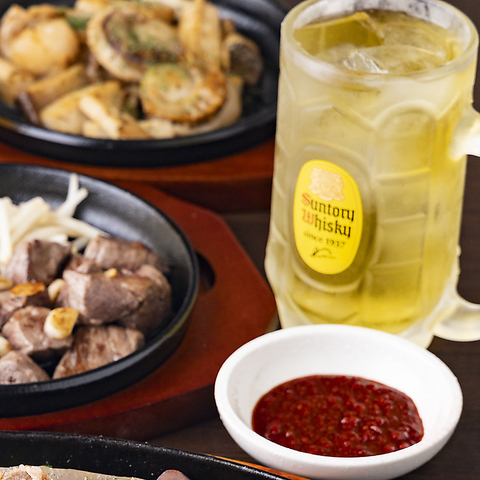 おすすめの鉄板料理「いかスジこん」は、希少部位の和牛あごすじ肉を使用し、特製のヤンニンだれで味付けした病みつきになる逸品♪「ホタテとエリンギのバター醤油焼き」は北海道産の大きなホタテを使用した食べ応え抜群の一皿!お酒のアテにもぴったりな鉄板で焼き上げるお料理を各種ご用意しております♪