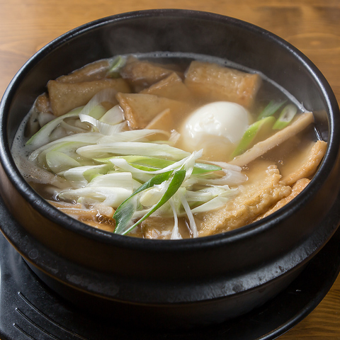 スンドゥブチゲは、絹豆腐と豚肉、アサリを使用した人気のチゲです。特製の牛骨出汁が加わることで、コクと深みのあるスープに仕上がっています。一口食べると、スパイシーで温かい味わいが口の中で広がり、体の芯から温まります。メイン料理としても、飲んだ後の〆としても最適な一品です。