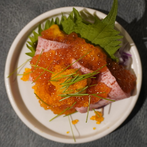 - ※お通し代お一人様500円、※22:00以降にご入店またはご滞在のお客様には、深夜料金としてお会計金額の10%を加算させていただきます。※(1)一般的に食肉の生食は食中毒を引き起こすリスクがございます。(2)お子様、ご高齢者など、食中毒に対する抵抗力の弱い方は、食肉の生食の摂取をお控えください。
