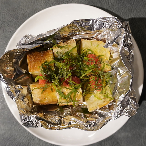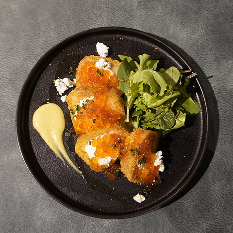 2階では自慢の逸品の数々を、立ち飲みスタイルでお愉しみいただけます。和の旨みを洋の技法で引き出した、どれもお酒との相性抜群です。