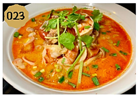 香り高いトムヤムスープが野菜に絡む絶品料理です。ピリ辛のスープは風味が豊かで、食べるたびにスパイシーさが広がります。酸味と辛味のバランスが絶妙で、食欲をそそる一品。具材には新鮮な野菜がたっぷり入っており、栄養満点。ランチやディナーにぴったりの、クセになる美味しさをぜひお楽しみください!
