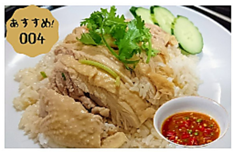 鶏肉の旨味が染み染みの【カオマンガイ】もぜひご賞味いただきたい一皿♪甘辛のタレをかけてどうぞ◎