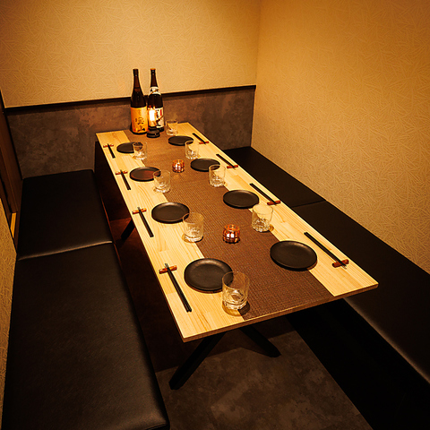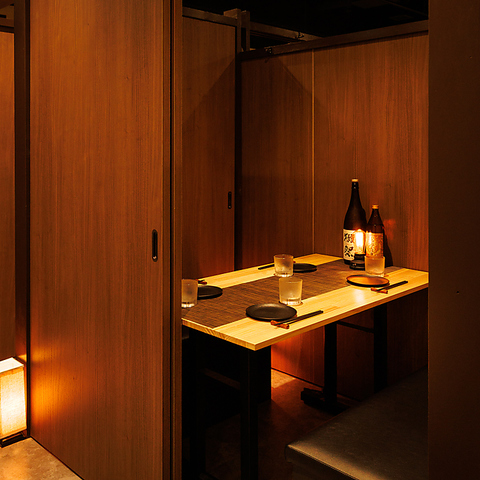 木のぬくもりに包まれた完全個室は、まるで自分たちだけのプライベート空間!やわらかな灯りと和モダンな雰囲気が、心地良いムードを演出します!デートや記念日、接待など、ゆったりとしたひとときを過ごすのにピッタリ♪落ち着きある雰囲気の中、料理とお酒をじっくり楽しめる、特別な空間をご用意してお待ちしてます!