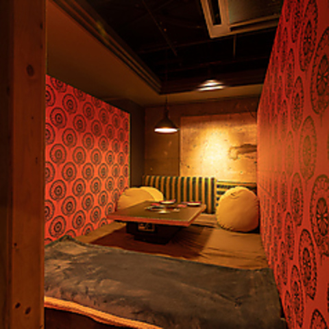 ベッドタイプ個室席◎プライベート空間の演出に お履き物はぬいで、寝転んでください
