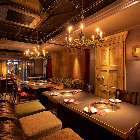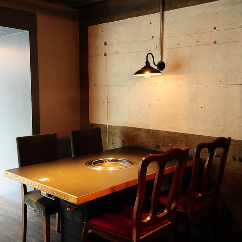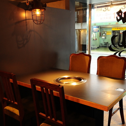 カジュアルで広々としたテーブルでおいしいお肉を召し上がってください