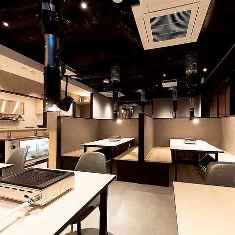 全てテーブル席で、6名様用テーブルが2つ、2名様用テーブルが2つ、4名様用テーブルが4つと、様々なシーンに対応できる配置となっています。ご家族やご友人とのお食事、会社の宴会など、あらゆるニーズにお応えします◎ゆったりとした空間で会話を楽しむことができ、落ち着いた雰囲気の中で心ゆくまで焼肉を堪能できます。