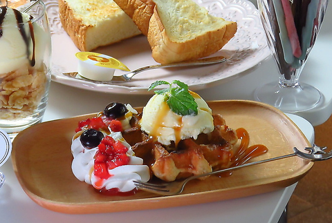 コーヒー、紅茶などのカフェメニューや各種アルコール、シャンパンなど多数取り揃えております◎