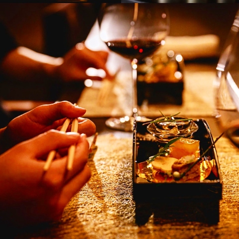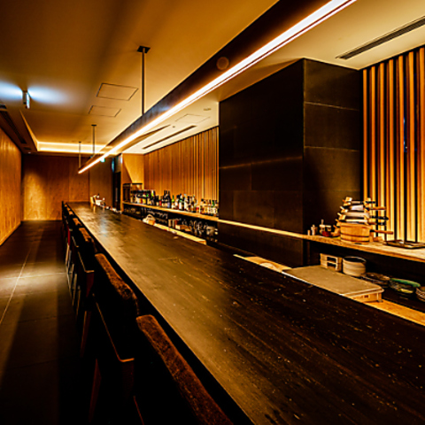 店内は黒を基調にしたシンプルで洗練された設え。完全個室やカウンター席など、利用シーンに合わせたお席をご用意しております。過度な緊張感なく、心地よい距離感でお食事を楽しめる空間づくりを大切にしています。接待や記念日はもちろん、気の合う方との会食や自分へのご褒美にもおすすめです。