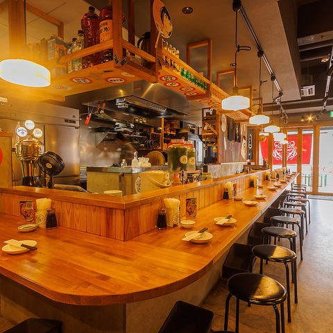 若者に人気な臨場感溢れるカウンター席を15席ご用意しています!活気あるオープンキッチンで、会社帰りの1杯や友人との集まりにもピッタリです。行きつけの一軒にどうぞ!にぎやかな大衆餃子酒場で乾杯♪