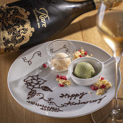 誕生日や記念日などの大切な日を祝うために、特別なデザートプレートをご用意しました♪恋人やお友達との思い出に残る瞬間を演出します!サプライズのお手伝いをいたします。当店こだわりのワインや料理と合わせて、大切な人との特別なお時間をお楽しみください。