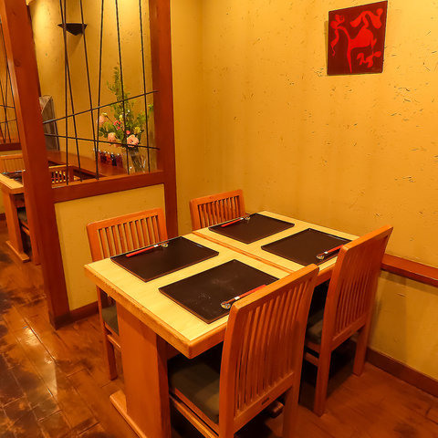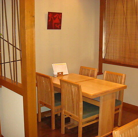 自然素材の温もりが感じられる木のテーブル席は、心安らぐひとときをお楽しみいただけます。落ち着いた雰囲気の中、自家製の蕎麦や季節の料理が並び、食事を囲むことでリラックスした時間をお過ごしいただけます。なたにとって特別な方との秘密の隠れ家にいかがですか?