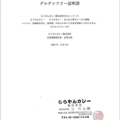 グルテンフリーとかいってるけどは、本当は少し小麦入ってるんでしょ?そう思われているそこのあなた!!ご安心ください!!当店では、グルテンフリー証明書というものをご用意しております♪つまり、これは正真正銘のグルテンフリーなんです!!安心して食べられますね♪健康に気を使っているそこのあなたに、是非とも食べて頂きたいです!!