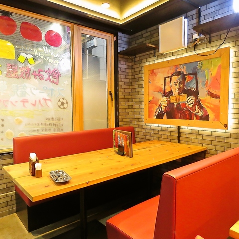 窓際にあるソファー席。ふかふかのシートは何時間座っていても全く疲れません!!デートや友達とのお食事。時間を忘れて楽しみたい!!そんなときにおすすめの席です♪壁にかかっている素敵な絵や映画ポスター!話すことが多すぎて、いつまでもいたい!大歓迎です♪4時まで営業しているので、ごゆっくりお楽しみ頂けます