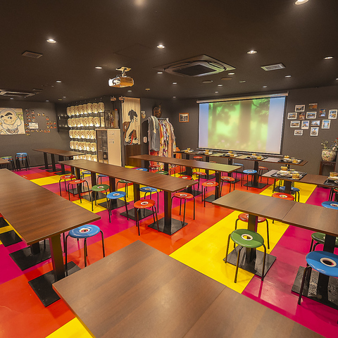 当店のイメージキャラクターを随所に取り入れ、訪れるお客様に親しみやすさを感じていただける内装です♪立地的にゆかりのあるキャラクターで、地域の魅力と合わせてお楽しみ頂けます♪レトロ感漂う色鮮やかな空間が、楽しいひとときをより一層引き立てます!特別な雰囲気の中でお食事をお楽しみください◎