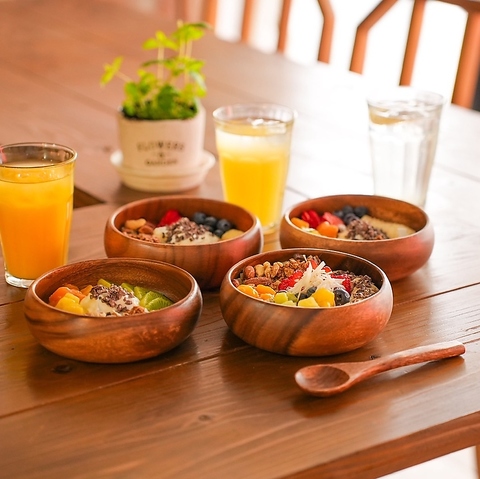 木製のカウンターにアサイーボウルを置いて写真を撮れば…インスタ映え間違いなし◎