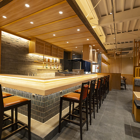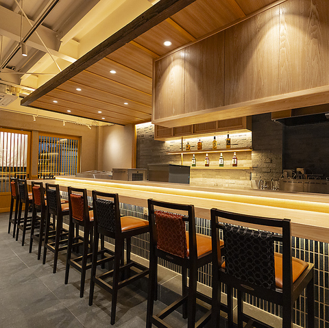 【カウンター席 1×12】職人が繰り広げる華麗な技を目の当たりにしながら、食事や会話が楽しめるカウンター席! 美味しい料理と素敵な時間があなたを待っています!