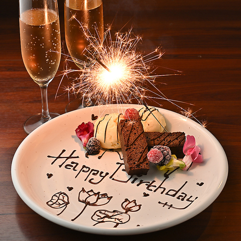 誕生日や記念日など特別な夜を華やかに彩る“記念日プレート”をご用意しております。特製のデザートにメッセージを添えて、思わず笑顔がこぼれるサプライズに。落ち着いた雰囲気の店内はデートやご夫婦の記念日にもぴったり。スタッフが心を込めてお手伝いしますので、ぜひお気軽にご相談ください。忘れられない夜を、代官山で。