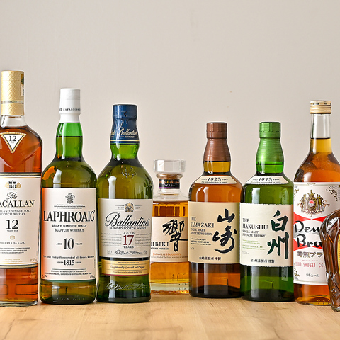 定番のスコッチから人気のジャパニーズまで幅広く揃え、食事に合わせて選べる充実のラインアップをご用意しています。香りや余韻の違いを楽しみながら、ゆったりとグラスを傾けるひとときは格別。食後の一杯にも最適です。
