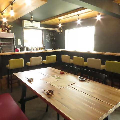 ≪少人数でのお集まりに≫総席数20席をご用意。カウンター8席に加え、6名様ほど着席可能なテーブル席を2卓ご用意しており、少人数でのご利用に最適です。木を基調とした落ち着きのある空間で、気の合う仲間とのお食事や、しっとりとした大人の時間をお楽しみください。おひとり様でのご来店もお待ちしております。