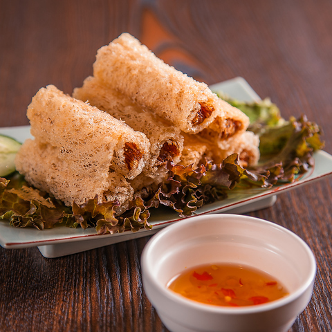 ベトナムの春巻きの一種である「海鮮春巻き」に海産物が加わったものです。海鮮春巻きはサクサクの皮で肉や野菜などを包み、揚げたものです。海産物版では、具材に海老やイカ、貝などが加わり、より豊かな味わいが楽しめます。ヘルシーなのにお酒のアテにもピッタリです◎