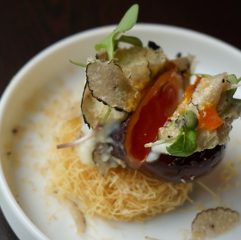 名物トリュフ豚足餃子など感動の一皿。香りと彩りで至福の時間を。
