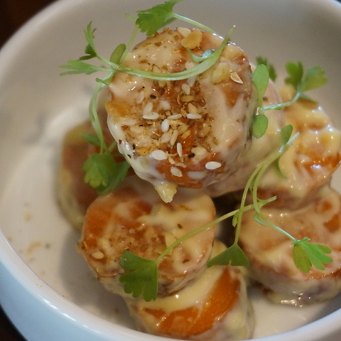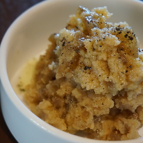 外はカリッと中はほくほく。小さなじゃがいもに、香り高いトリュフバターホイップをたっぷり。ふわっと広がる香りと濃厚なコクがクセになる、“普通じゃないフライドポテト”。