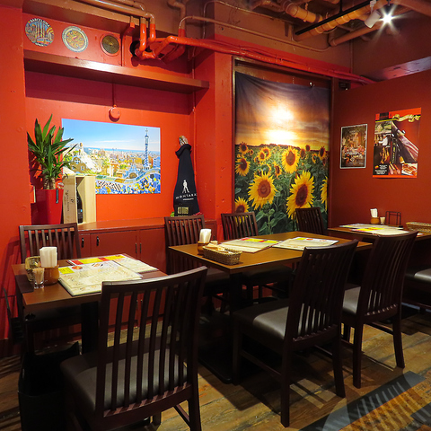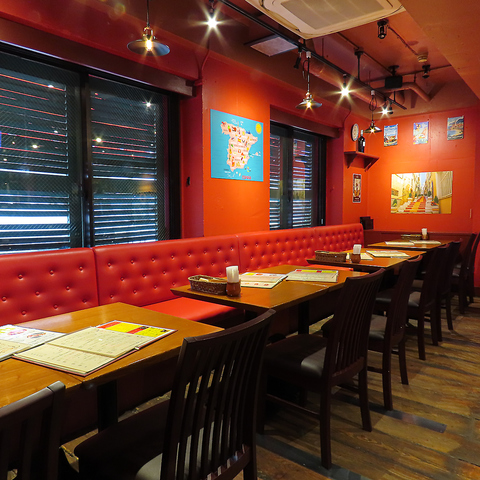 最大40名様までOK!貸切は30名様以上のご利用とさせて頂きます。赤を基調としたモダンな店内♪スペイン料理を囲みながら本格ワインやビールで乾杯はいかがですか?