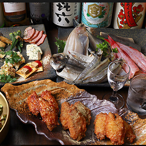 お酒が進む絶品おつまみが勢ぞろい!「肴盛」は3サイズから選べて、その日の気分でチョイスできるのが嬉しいポイント。名物の手羽先は、3種の味付けをご用意しているので、ぜひお気に入りの一品を見つけてください♪ご希望に応じてコース料理も承りますので、人数やご予算などお気軽にご相談を!