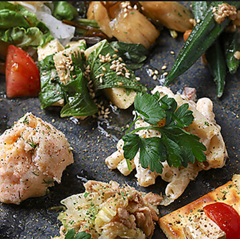 まずは「肴盛り」で乾杯を♪小(5種)・中(8種)・大(10種)と選べる嬉しいサイズ展開!638円(税込)~とリーズナブルに日替わりの酒の当てが楽しめます。今日はどんな味に出会えるかワクワク!日本酒や焼酎との相性も抜群なので、お好みのお酒と一緒にぜひご堪能ください!