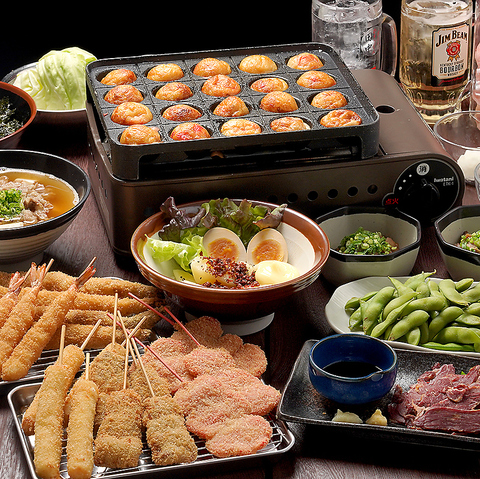 串カツのほか、牛すじ土手やホルモン炒め、葱まみれチー平焼きなど、多彩な大阪名物を楽しめます!