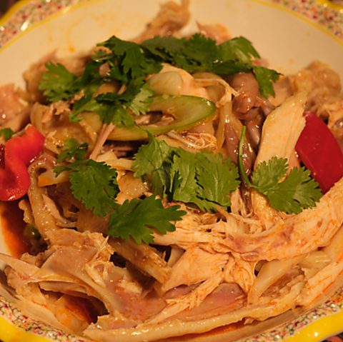 大皿に盛られた鶏肉は、その存在感で圧倒される。スパイシーな香りが漂い、一口食べると驚くほどのジューシーさに感動します♪しっかりとした味付けが肉の旨味を引き立て、食欲をそそること間違いなし!友人とシェアすることで、より一層楽しめます♪Sサイズ(2~3人前)2980:円 Lサイズ(4~5人前):3980円(共に税込)