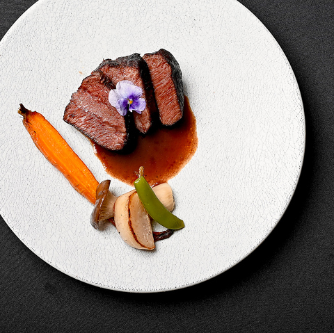 アミューズの後は、冷たい前菜と温かい前菜の緩急をお楽しみください。贅沢なお魚料理を堪能したら、お口直しのソルベをご用意いたします。メインディッシュは「和牛フィレ肉のロティ」をご提供。濃厚な赤身肉の旨味と柔らかさを味わえるスペシャルコースは、まさに特別な日に最適なフルコースです。