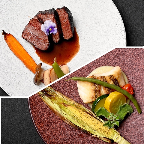 お肉もお魚も両方食べたい…そんな希望が叶う贅沢なコースをご用意いたしました!お魚料理はこだわりの瀬戸内海産天然鯛を使用しています。お肉料理は、和牛ほほ肉の赤ワイン煮かハンガリー産鴨のロティからお好きな方をお選びいただけます☆