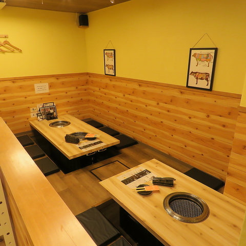 掘りごたつタイプのお座敷席を完備しております。ゆったりリラックスしてお食事をしていただけます。くつろいで焼肉をお愉しみいただき、素敵なお時間をお過ごしください。ご家族やお子様がいらっしゃる方などには人気のお席となっております。心地よくご飲食をお愉しみください♪