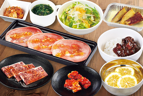 贅沢な焼肉を楽しむなら、【牛タンプレミアムコース】がオススメ!黒毛牛ロースやドラゴンカルビなど、選りすぐりのお肉が勢揃い。さらに、ポテトサラダや旨塩キュウリなどのサイドメニューも充実しております。ご家族やご友人とのお食事などにぜひご利用ください!※画像はイメージです。