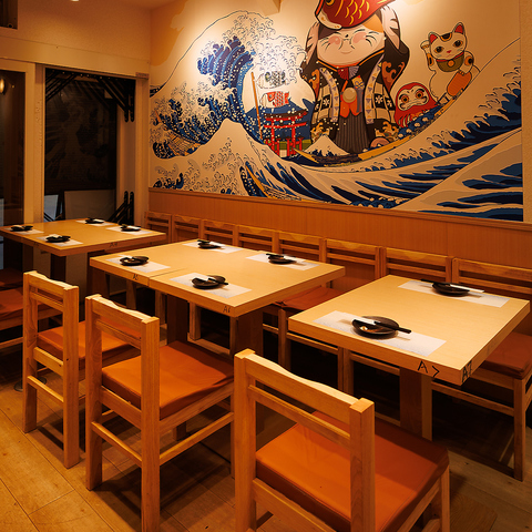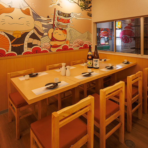 ゆったりとお過ごしいただけるテーブル席を多数完備しております。2名様~団体様まで人数や用途に合わせてぴったりのお席へご案内させていただきます。宴会コースは、3時間飲み放題付4000円~多数ご用意しております。川越での飲み会や宴会、接待、女子会、合コン、歓送迎会などの各種宴会におすすめです。